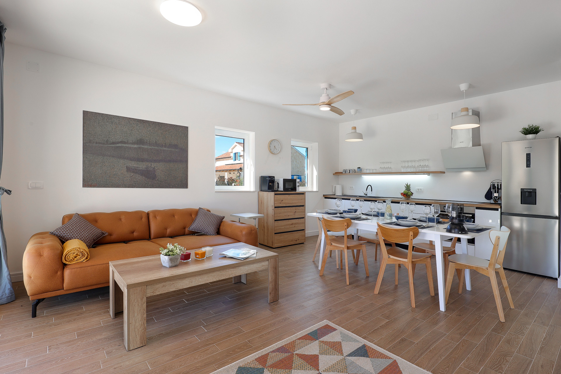 PAPINI DVORI (Papa's Court Villas) - A Luxurious Villa Complex on the Island of Pašman Discover the perfect getaway at Papini Dvori, a stunning complex of luxury villas on the breathtaking island of Pašman. Just 600 meters from the sea, these villas offer a unique blend of Mediterranean charm and modern luxury, creating an unforgettable experience for all your senses. Feel the warmth of the sun, the fresh sea breeze and the soothing scent of Mediterranean herbs as you immerse yourself in the true Dalmatian lifestyle. From the traditional stone exteriors with blue shutters reflecting authentic Dalmatian architecture to the elegant, modern interiors designed for ultimate comfort, every detail is carefully selected to provide a harmonious and luxurious retreat. Whether you're looking for relaxation, adventure or a romantic escape, Papini Dvori is your ideal luxury retreat.