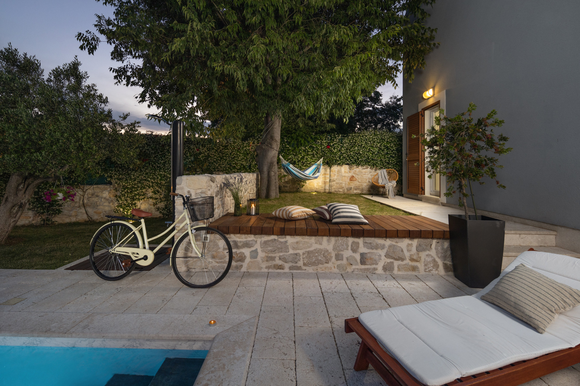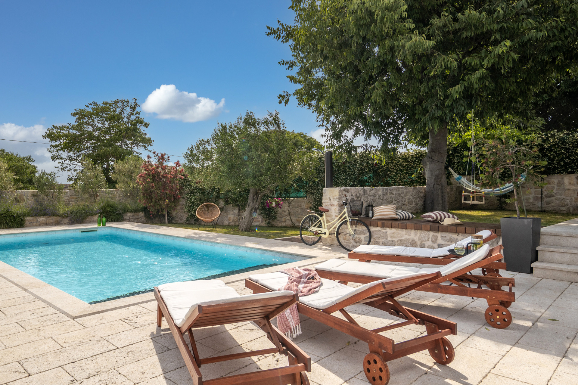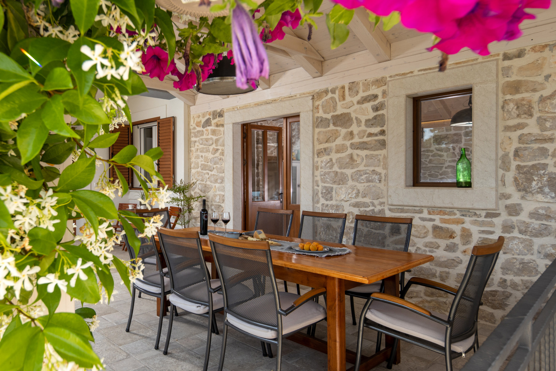 Discover Villa Bandela, a luxury stone villa in Zadar with a private heated pool, lush Mediterranean garden, fresh vegetables, and authentic Dalmatian comfort in this charming stone villa for up to 9 guests.