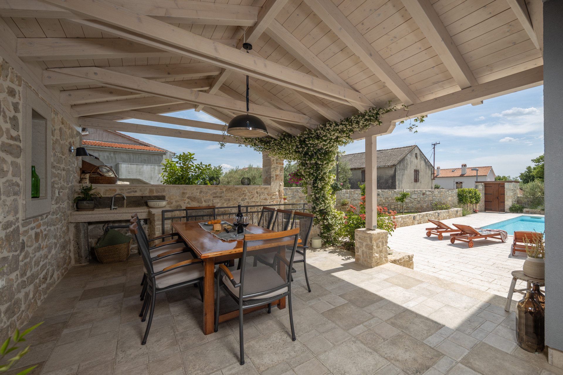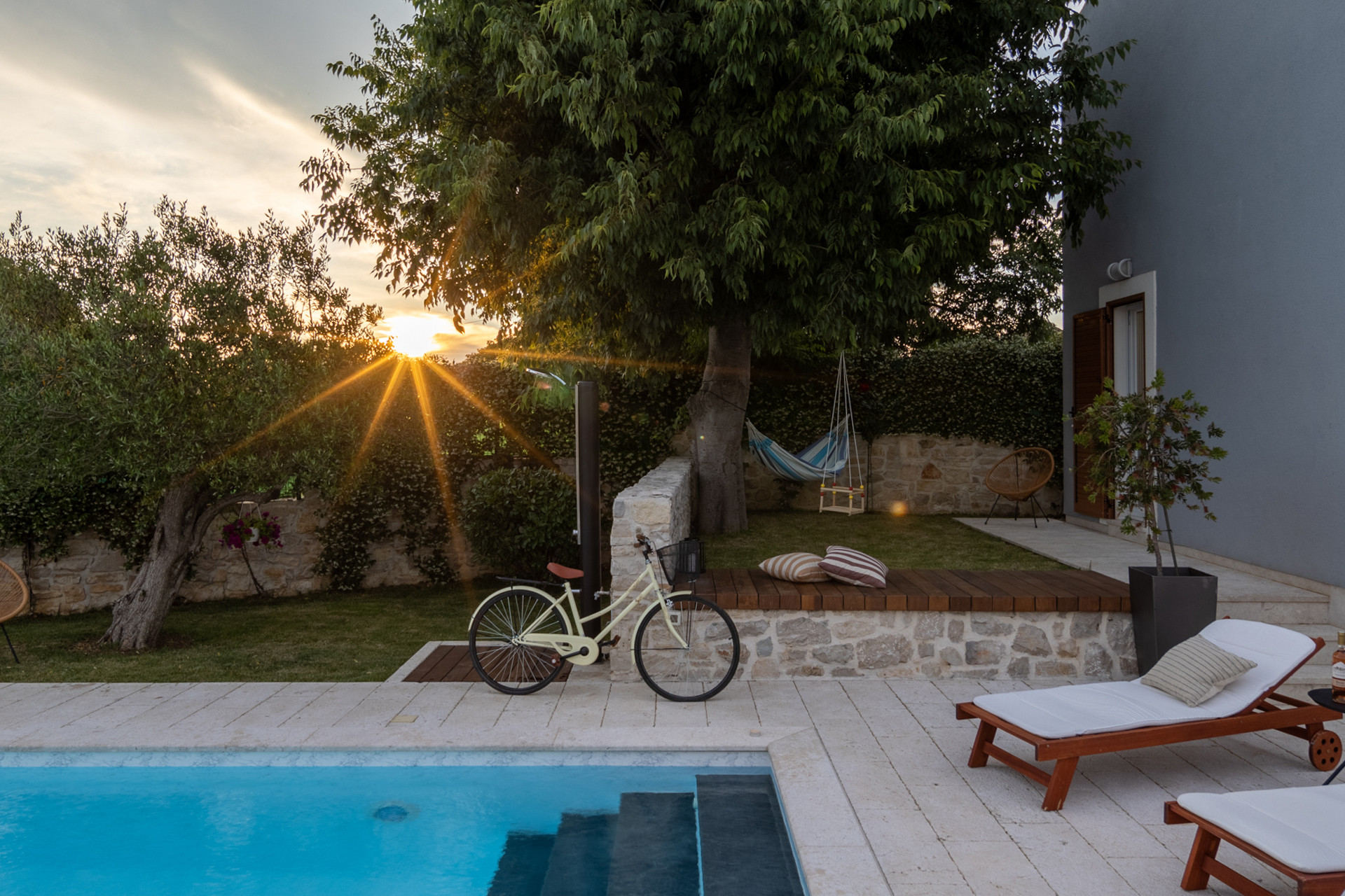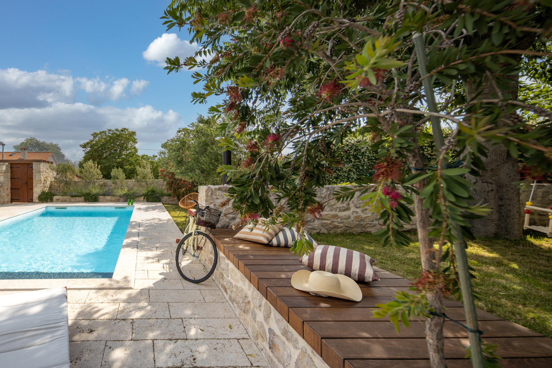 Discover Villa Bandela, a luxury stone villa in Zadar with a private heated pool, lush Mediterranean garden, fresh vegetables, and authentic Dalmatian comfort in this charming stone villa for up to 9 guests.