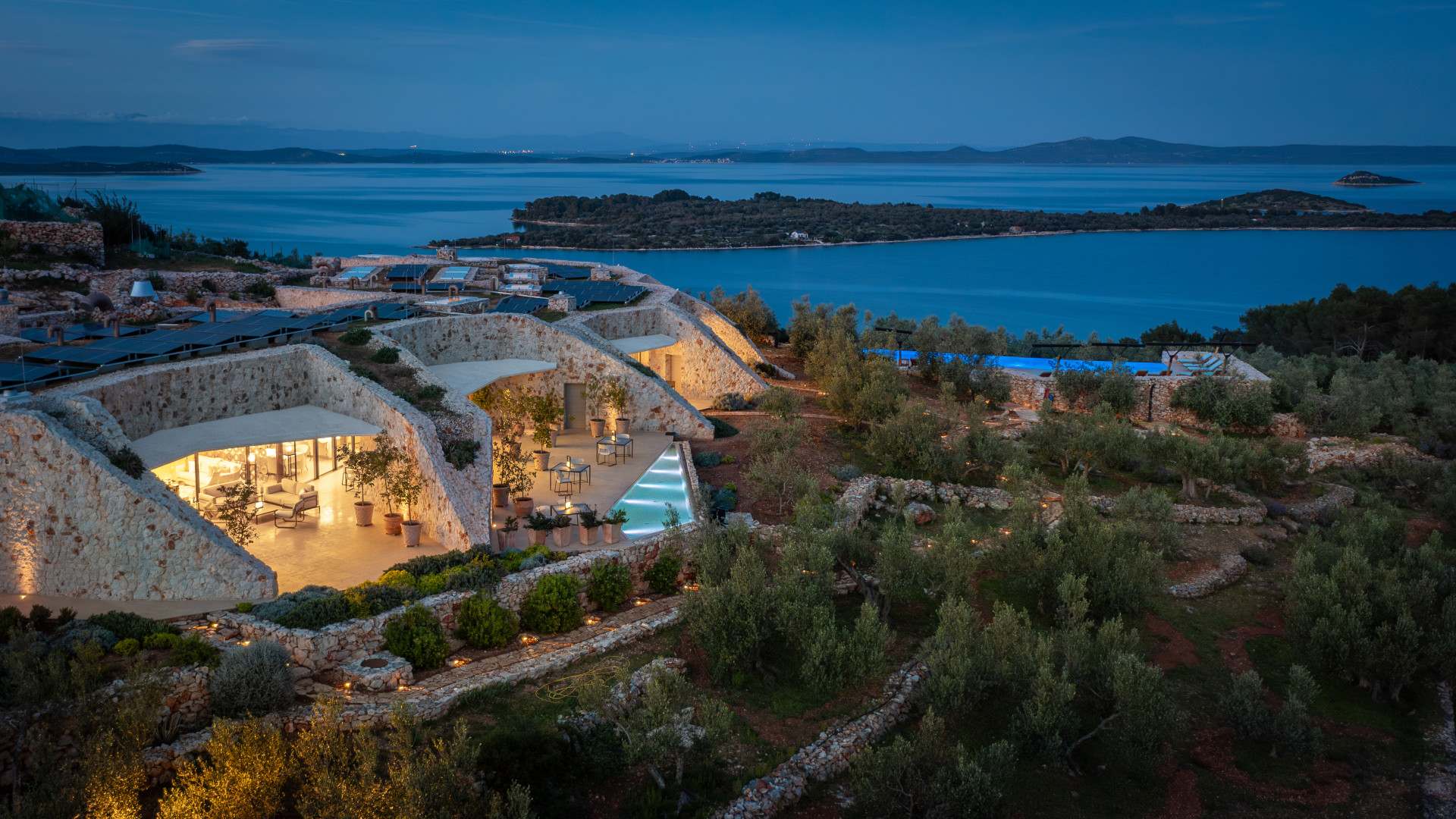 This unique property, designed by renowned architect Nikola Basic, is built in the middle of a century-old organic olive grove, offering ecological luxury accommodation that meets Leading Hotels of the World Association standards.
